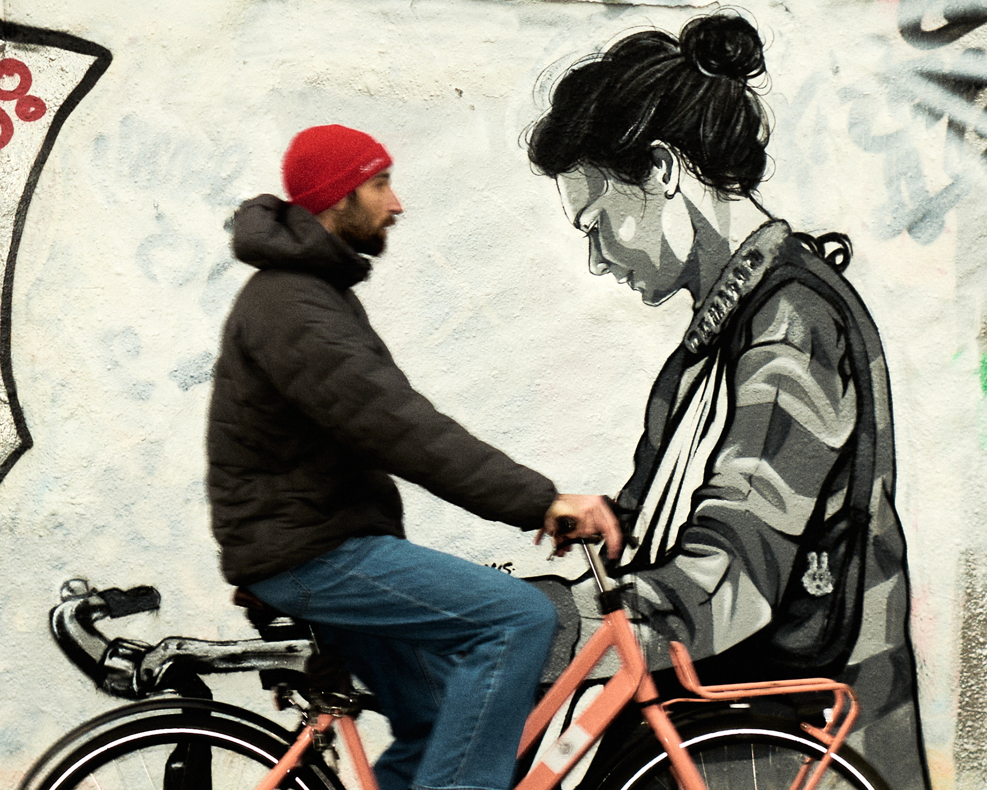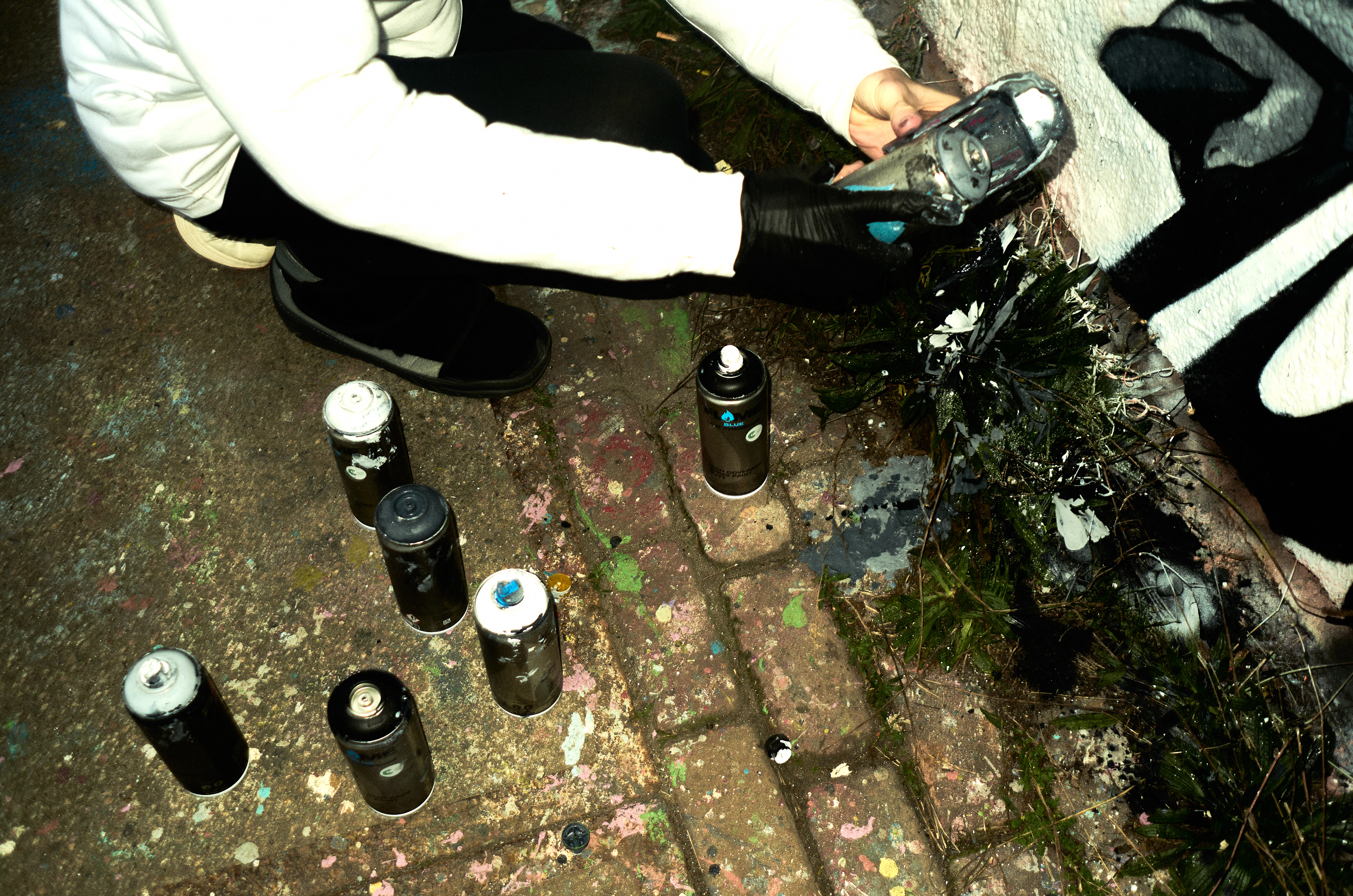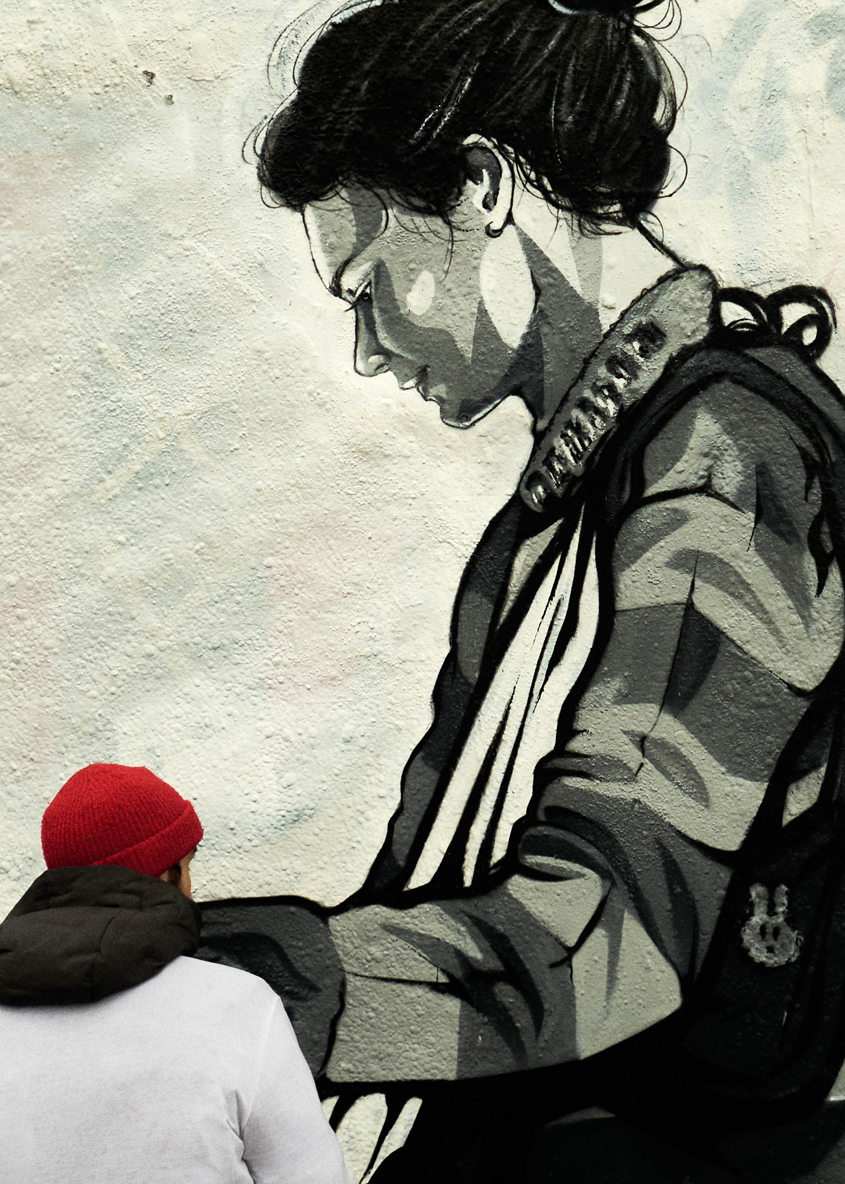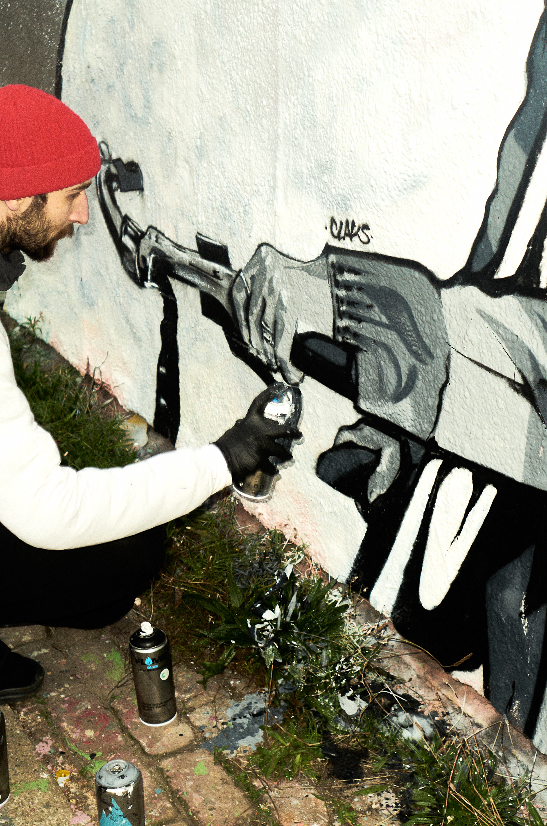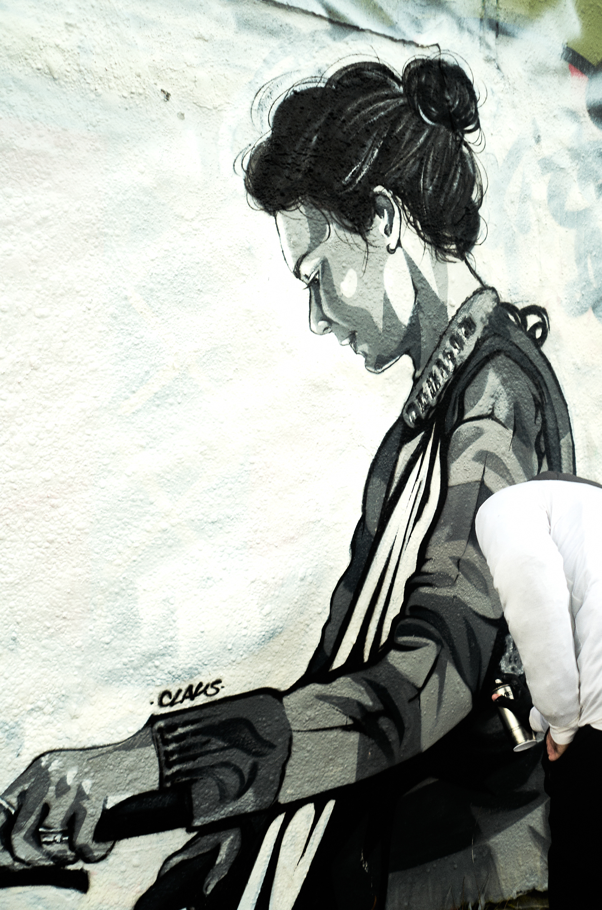 CONTEXTE : Comme à chaque fois que je découvre une ville, l’envie me ronge d’y laisser une trace. Direction le quartier NDSM à Amsterdam pour ma dernière intervention de l’année. L’exercice à l’étranger impose ses propres limites car il est impossible de faire entrer une échelle dans une valise. Cette contrainte logistique m'a forcé à travailler à hauteur d'homme et à délaisser le monumental pour me focaliser sur l'intime.