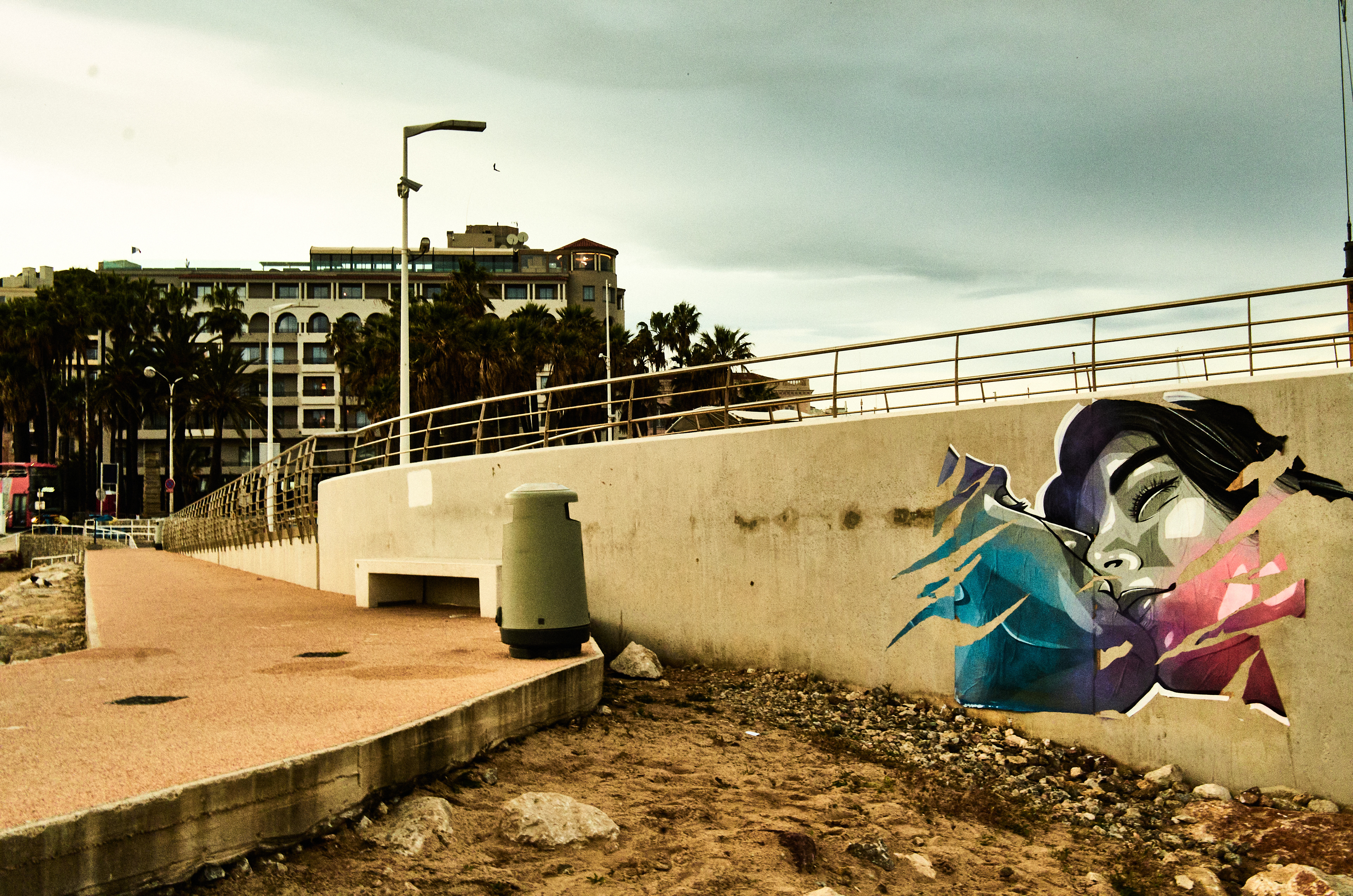 I wandered the city for most of the night in search of the perfect spot, until I stumbled upon this wall fragment facing the beach. It was pitch black. I worked in total darkness, relying on instinct. I only discovered the result at sunrise.