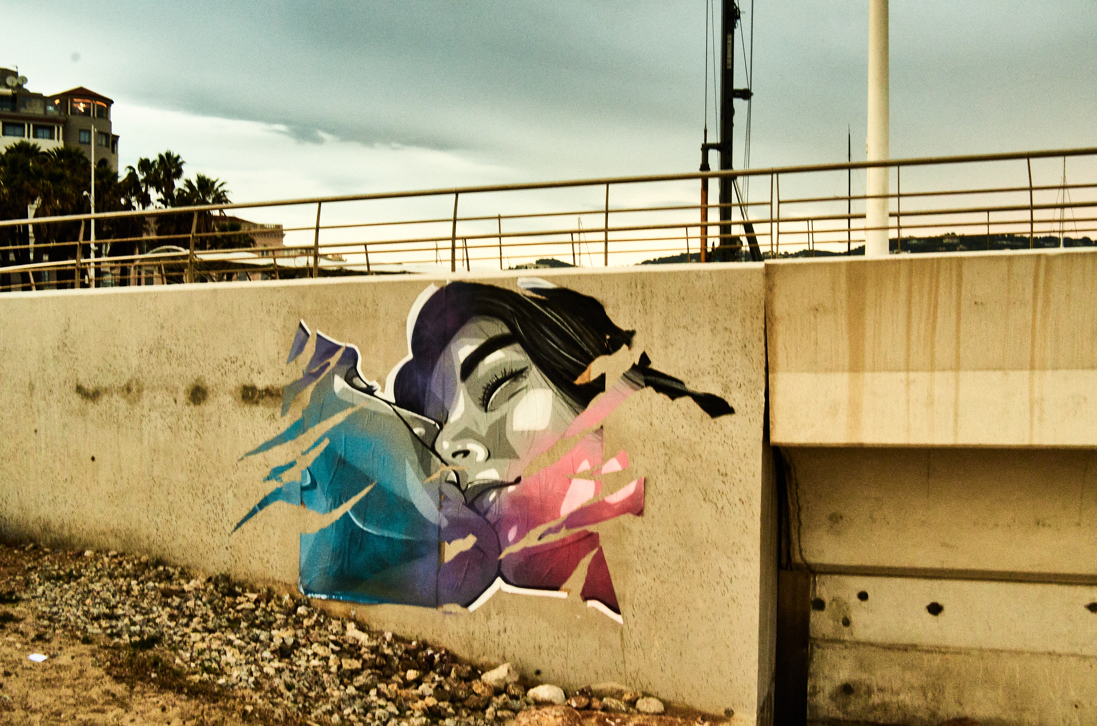 J'erre une bonne partie de la nuit dans la ville en quête du lieu idéal, jusqu'à ce que je tombe sur ce fragment de mur face à la plage. À cet endroit, l'obscurité est totale. Je travaille dans le noir complet, à l'instinct. Ce n'est qu'au lever du jour que je découvre le résultat.